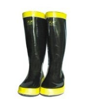 消防膠靴是消防員進入火場滅火時(D類滅火器)的腳部防護裝備;膠靴底部內(nèi)嵌鋼板,具有防水和防穿刺功能,亦具備基本的隔熱(隔熱服)和絕緣功能。主要材料為橡膠、鋼板。